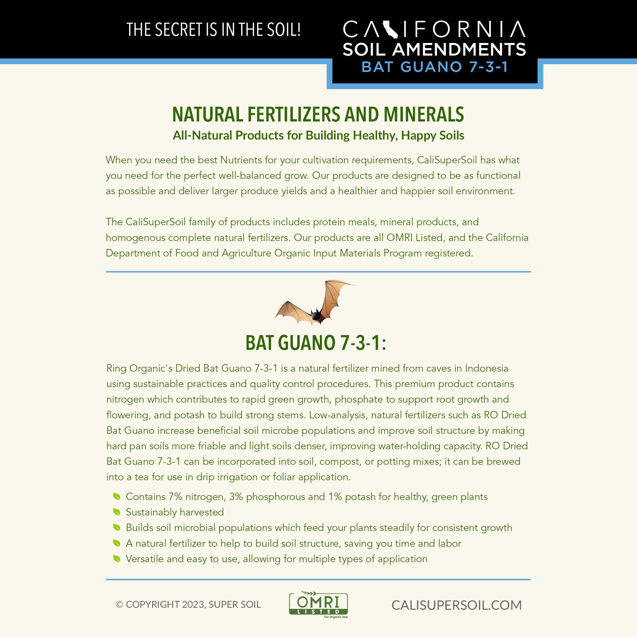 The CaliSuperSoil family of products includes protein meals, mineral products, and homogenous complete natural fertilizers. Our products are all OMRI Listed, and the California Department of Food and Agriculture Organic Input Materials Program registered.