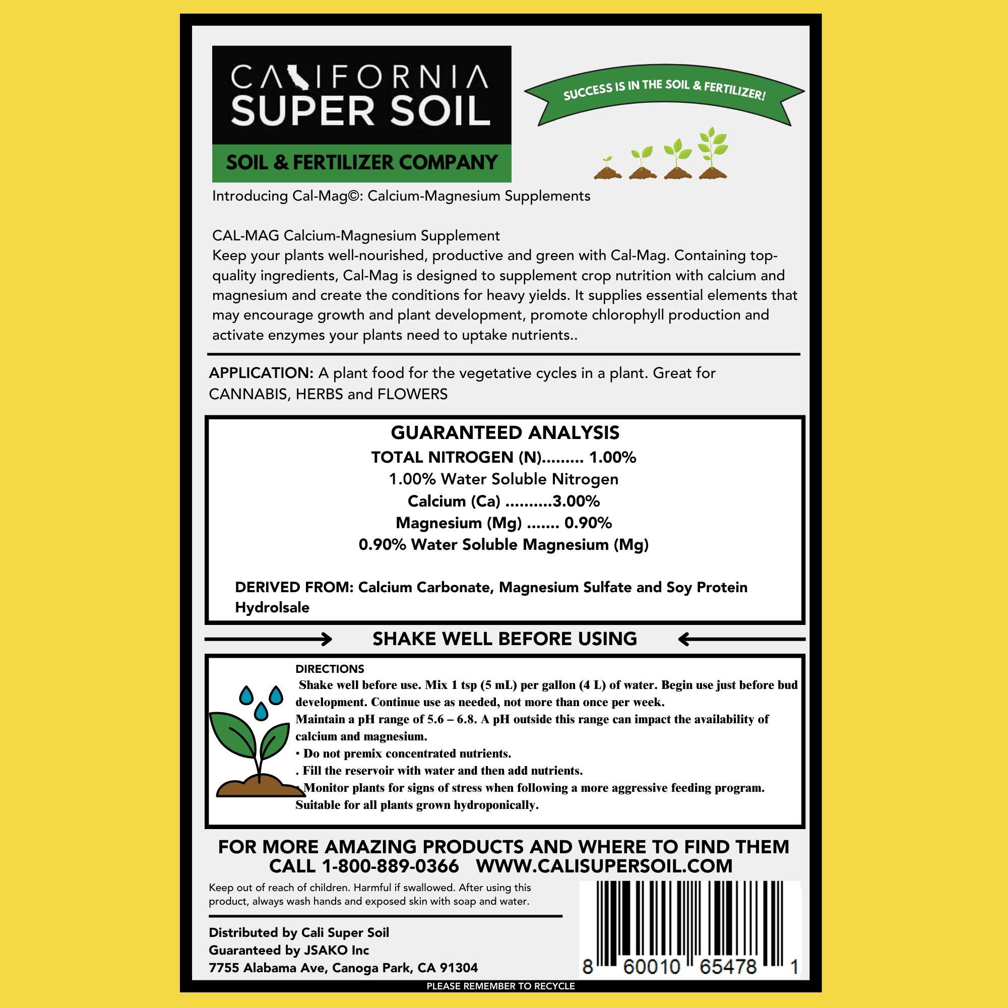 Prevent Blossom End Rot, Tip Burn, and Leaf Yellowing with California Super Soil’s CAL-MAG Formula