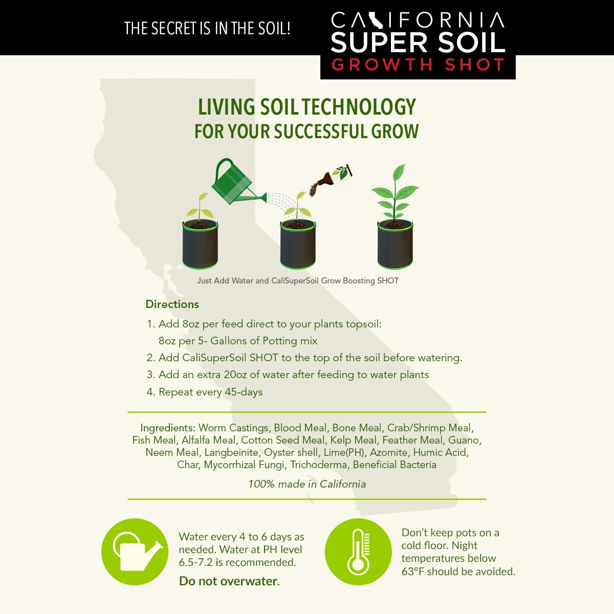 - NUTRIENT INFUSED SOIL: Our soil is some 800% more nutrient dense than simple potting soil. We have included all the nutrients you need for your entire grow within our soil. California Super Soil is primarily a heavily nutrient infused soil that removed the need to add external nutrients to your grow. Our Super Soil delivers a perfect turn-key grow solution for the most damaging of cannabis plants.